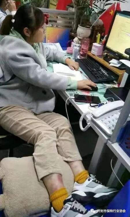 养病期间,付金琦看到工作群里领导同事们都在为了开门红加班加点地工作着,她特别希望自己能够早些好起来,尽早回归团队跟大家一起并肩奋斗。在腿肿稍微消除一些,能够下床走路的时候,她第一时间向公司销假,正常上班。尽管每天还要吃药,还要去医院治疗,但是她跟其他同事一样上班、加班,并没有向公司领导申请特殊照顾。