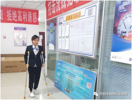 第二天,王滢脚趾肿痛只能靠双拐行走,同事们都劝她去医院做下检查,她总笑着说:“没事的,能坚持!”领导知道后,看到她下巴黑肿,脚趾肿胀,要求她在家休息几天,她还是笑着说到:“没事领导,启动会刚开过,这两天咱们正忙,等缓几天我再去看病”。