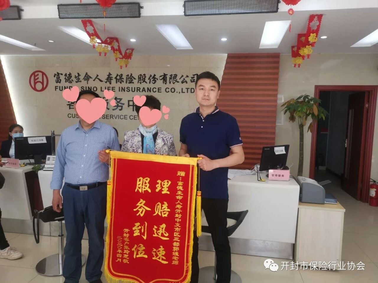 2020年5月4号,客户张女士及其家属带着一面"理赔迅速服务高效"的锦旗送至富德生命人寿开封中支客服柜面,激动的握住服务人员的手说:“早就该来感谢您们了,在我最无助的时候是你们的热情周到的服务陪我度过了最艰难的日子。公司的理赔速度,专业敬业的精神值得我去多多宣传呀,好的公司就是要让更多人知道!"