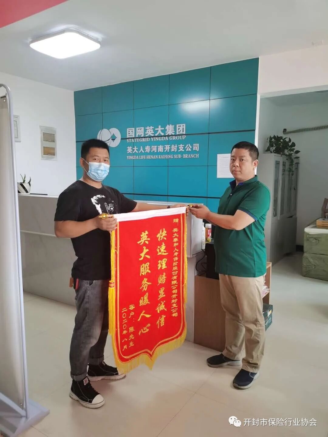 开封尉氏的陈先生,33岁,农忙时回老家帮父母种地,不忙时回县城经营自己的生意,他在县城早已买了房子,开上了车子,拥有一个幸福美满的家庭,早已是朋友同行们心目中幸福的典范,年轻有为者的代表。然而真的是天有不测风云,人有旦夕祸福,2020年6月16日陈先生在家突发胸痛、头晕,无法自控,被开封市中心医院确诊为急性心肌梗死!公司理赔人员接到报案后,想客户之所想,急客户之所急,第一时间与客户家属取得联系送去问候。所幸,陈先生在半年前为自己购买了英大康佑倍至终身重疾保险,保额200000元,和百万安惠医疗,保额4005000元。7月23日我司接到理赔申请,次日我司做出赔偿重疾20万决定,客户当日收到赔款,且豁免以后各期保费合计100282元,还有医疗费的报销额等,客户感慨万千,专做锦旗相送。
