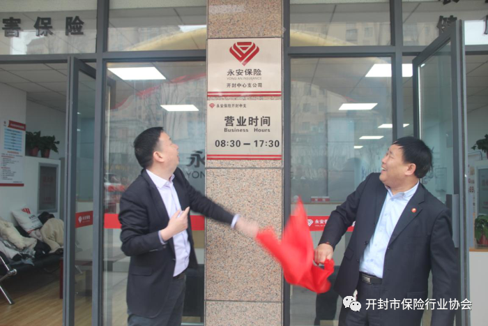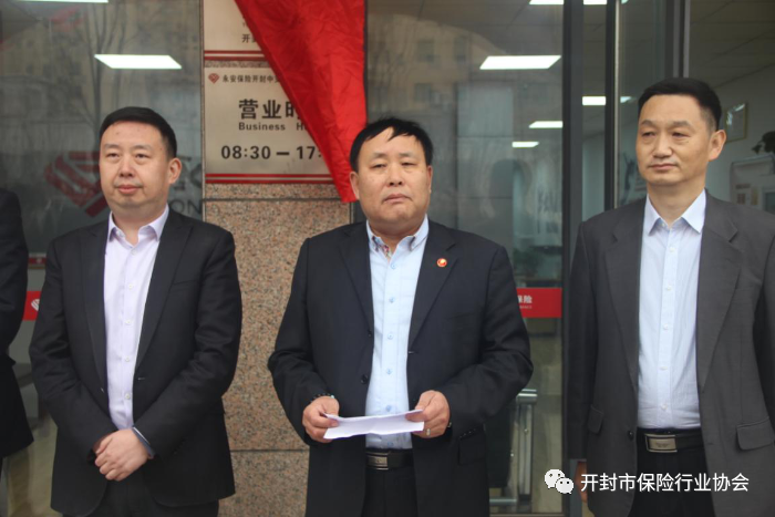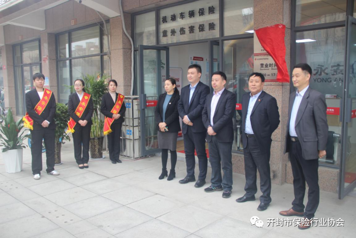 永安保险河南分公司副总经理刘喜、纪委书记刘坚、理赔部总监吕彦伟、永安保险开封中支总经理范钦佩出席揭牌仪式,刘喜和范钦佩分别致辞并共同揭牌。