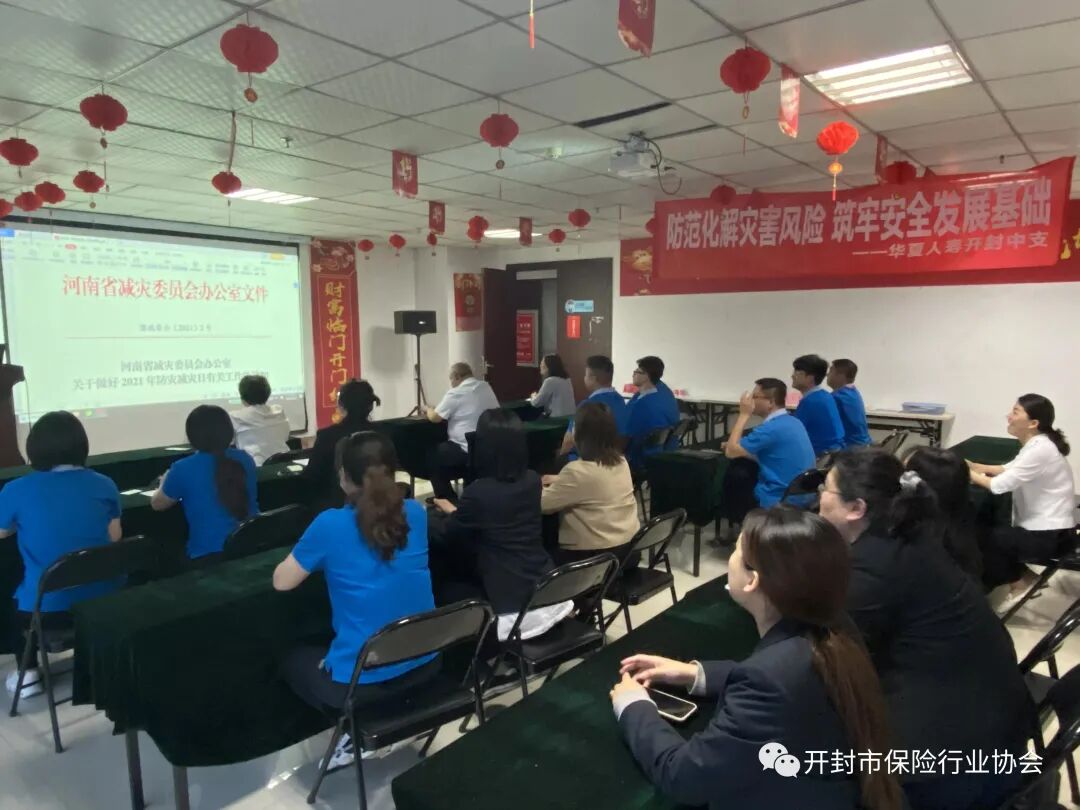 会议强调,防灾减灾,维护群众生命财产安全,是每一个公民应有的责任和义务,防灾减灾,华夏保险开封中支在行动。