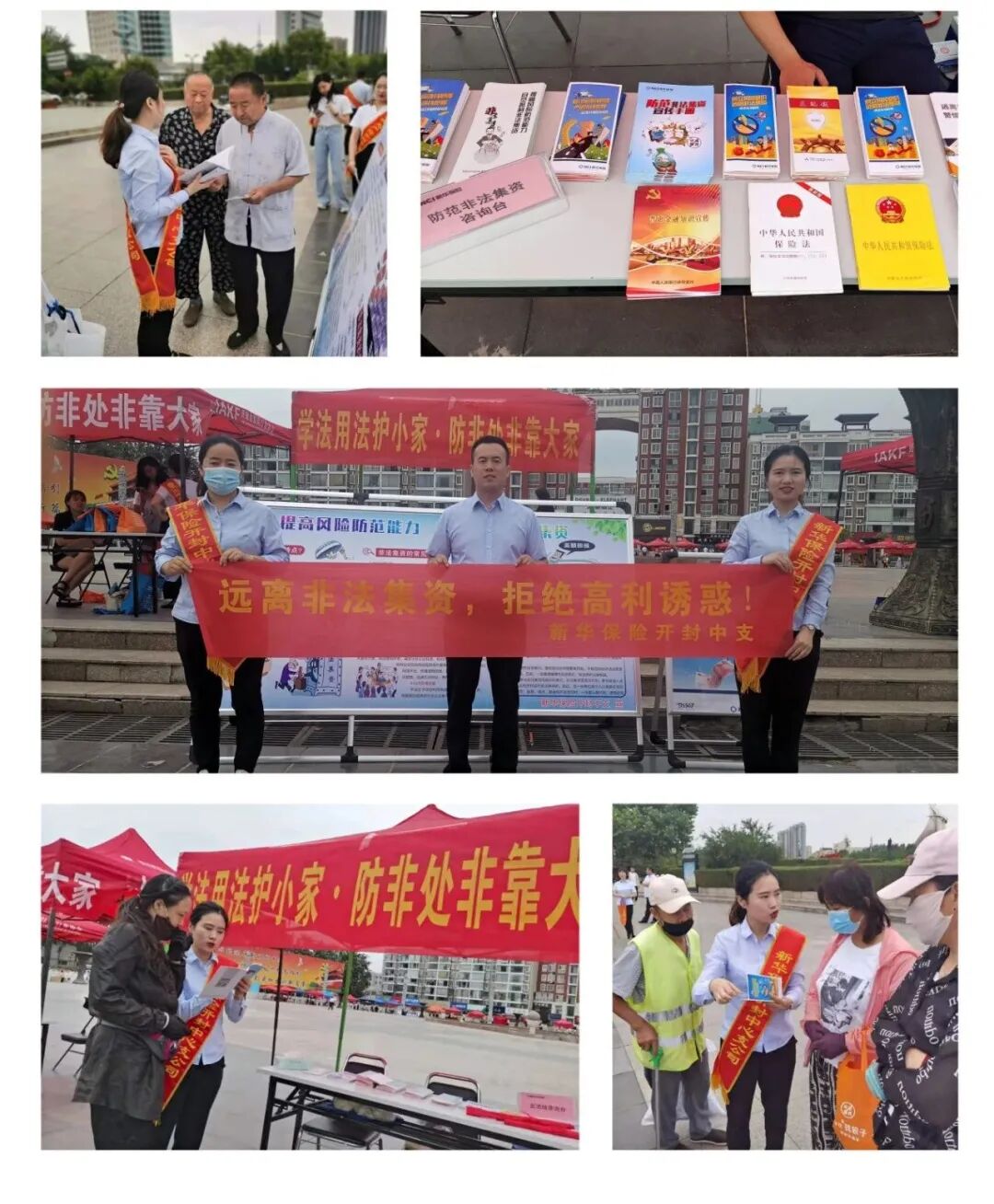 为贯彻落实金融局、开封银保监分局及公司2021年防范非法集资宣传月活动要求,切实做好防范非法集资宣传月工作,进一步增强社会公众防范非法集资的能力,2021 年6月18日,新华保险开封中支开展了以“学法用法护小家·防非处非靠大家”为主题的防范非法集资户外宣传活动。