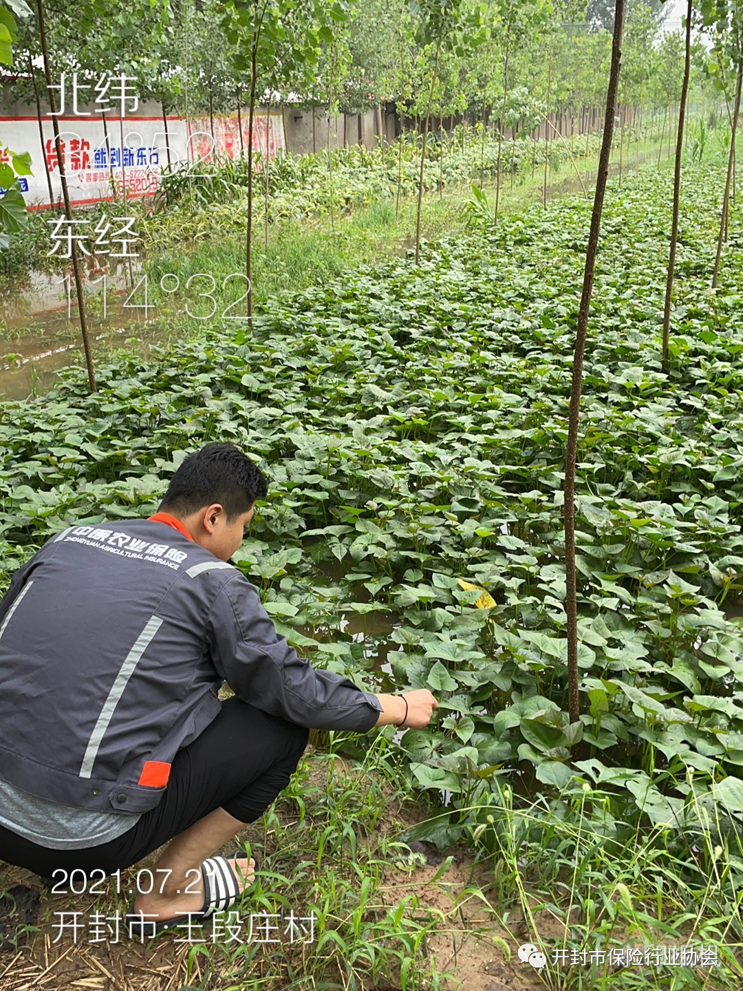 冒雨赴农田进行现场查勘。连日来的大雨造成部分农田内涝严重,中原农险开封县区机构查勘人员及时赶赴过水农田,对花生、大棚、红薯等踏查受灾情况,安抚受灾农户。