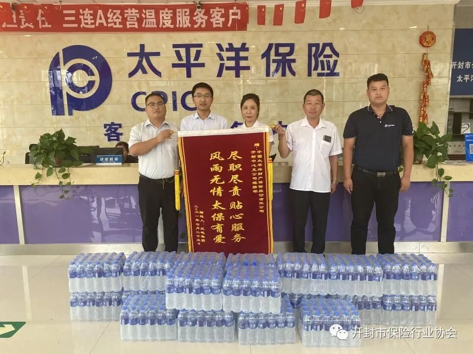 理赔案件中,其中三毛集团企财险报案6件,经查勘员迅速查勘定损,已于23日率先完成赔付3件,赔付金额近3万元,客户对太平洋产险开封中支专业迅速的理赔服务非常满意,并派人专程送上“尽职尽责 贴心服务 风雨无情 太保有爱”锦旗及部分慰问品,盛赞该公司的责任担当,表示要在之前基础之上进行加保。