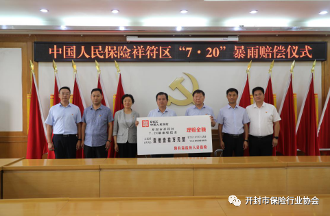 7月29日上午,人保财险开封市分公司总经理于江、总经理助理宋利峰带领祥符支公司负责人一行拜访了中共开封市祥符区区委,拜访了开封市祥符区区委书记王彦涛、区长张红军、副书记兼政法委书记岳青,就“7.20”暴雨综治家财险理赔救灾及充分发挥综治险优势,做好民生保障等方面工作进行了座谈交流,同时举行了祥符区“7.20”暴雨赔偿仪式,向祥符区支付综治家财保险理赔款110万元。