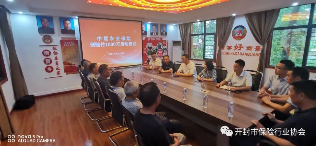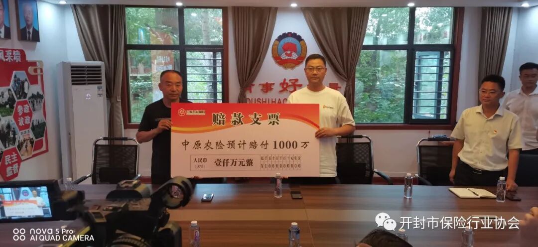 7月28日下午,尉氏县南曹乡政府出险了温馨和动人的一幕。中原农险开封市服务组负责人刘长河将受灾花生农作物预赔款1000万元标识牌交至南曹乡党委书记杨小保的手中,仅当天就已向南曹乡村民支付理赔款300万元。