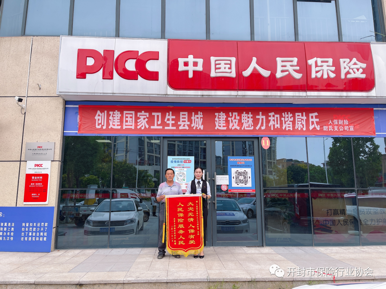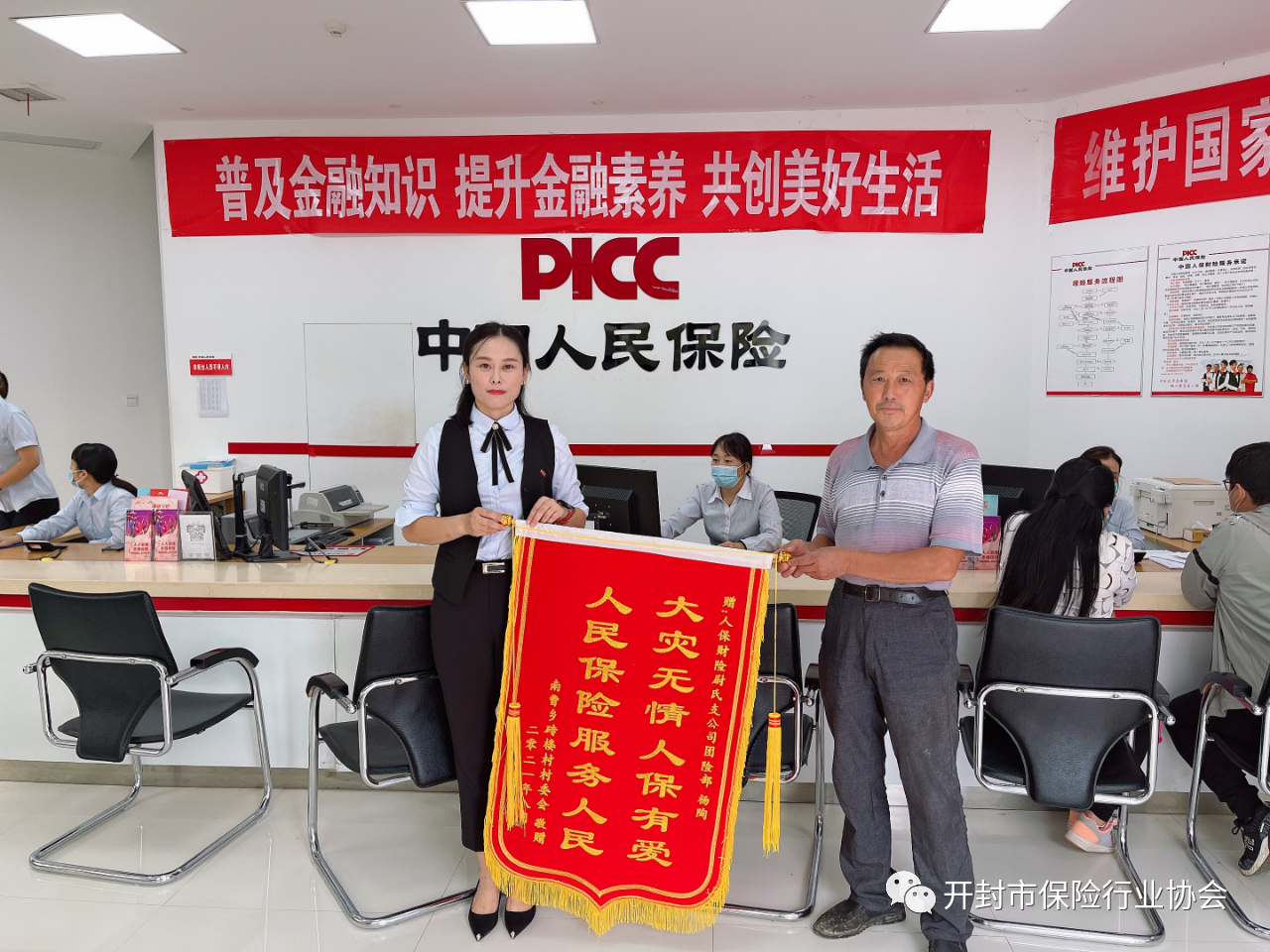 9月6日,尉氏县南曹乡砖楼村村委将印有“大灾无情 人保有爱 人民保险 服务人民”的表扬锦旗送到开封尉氏支公司工作人员手中,代表受灾农户马占岭老人对公司在“7.20”暴雨灾害综治险理赔中提供的暖心高效的理赔服务表示感谢。