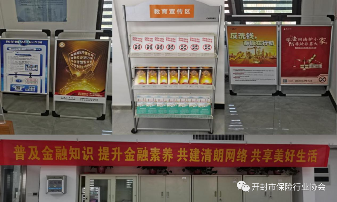 宣传活动中,中支新生活广场及各机构网点职场内分别悬挂标语条幅、张贴活动海报,摆放展板、展架,新生活广场内设立常态化的“教育宣传专区”,摆放了2021版的金融知识宣传折页以及保险知识宣传折页,同时设立有“老年人休息专区”,“老人接待专席”,为老年人配备了老花镜和大字版的宣传折页等方便服务老年人的配属设施,职场内营造宣传氛围,让更多的消费者了解金融知识、防范金融风险、理性金融投资。