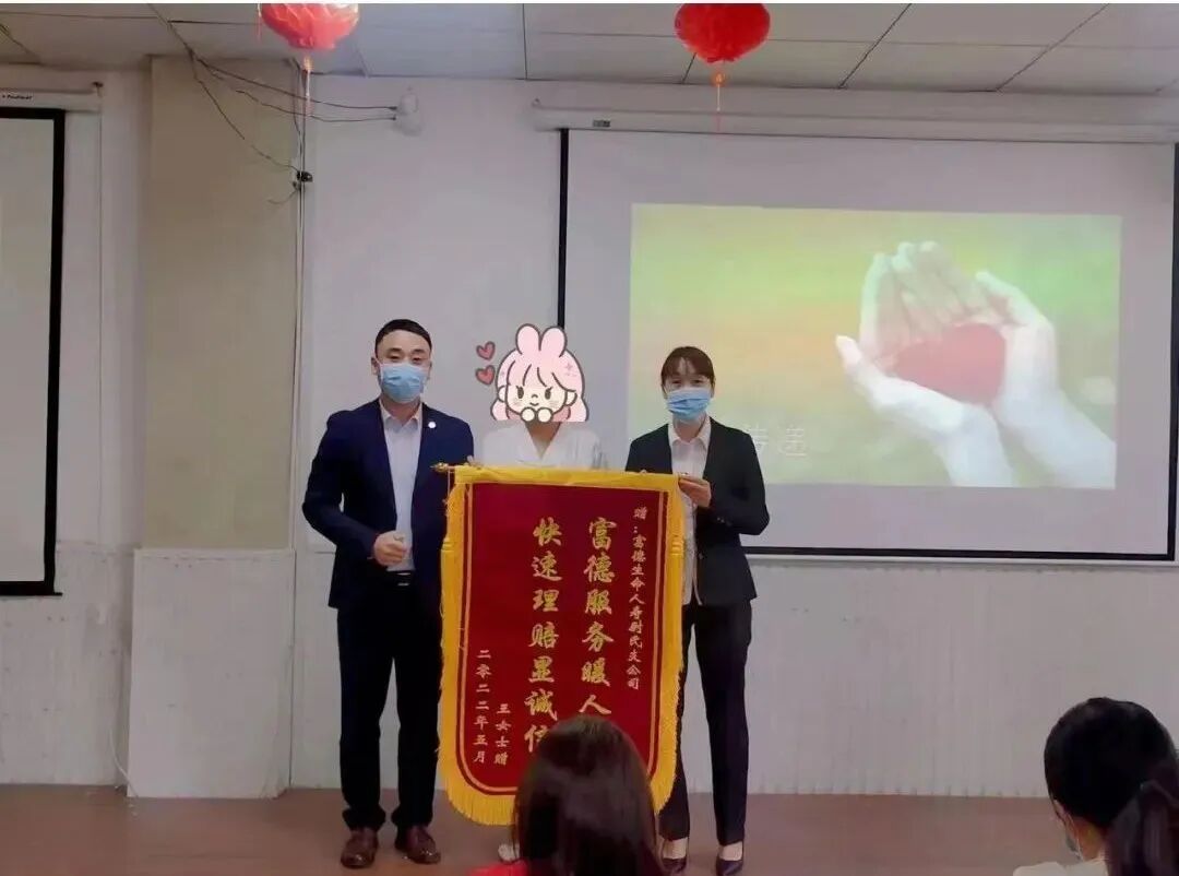2022年6月25日富德生命人寿尉氏营销服务部客户王先生家属手拿锦旗对工作人员表示感谢!