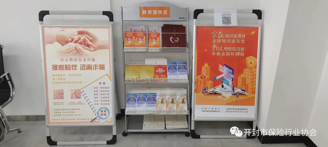 宣传期间,该中支新生活广场及各机构网点职场内分别悬挂标语条幅、张贴活动海报,摆放展板、展架,新生活广场内设立常态化的“教育宣传专区”,摆放2022年版金融知识宣传折页,同时配备适老化服务措施:“老年人休息专区”,“老人接待专席”,为老年人配备了老花镜和轮椅等方便服务老年人的配属设施,职场内营造宣传氛围,让更多的消费者了解金融知识、防范金融风险、理性金融投资。活动期间,该中支通过线上、线下不同的方式组织从业人员开展反洗钱、防范非法集资、防范养老诈骗等金融知识专题教育培训,让从业人员和社会公众深入了解各种金融知识,提高金融风险防范意识和技能。