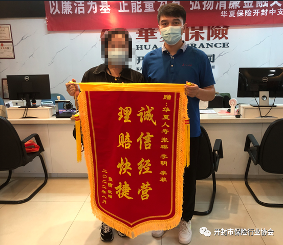 2022年9月,华夏保险开封中支迎来了一位客户,客户手持锦旗“诚信经营,理赔快捷”来到公司,对公司热情贴心、快速高效的理赔服务感激不已。