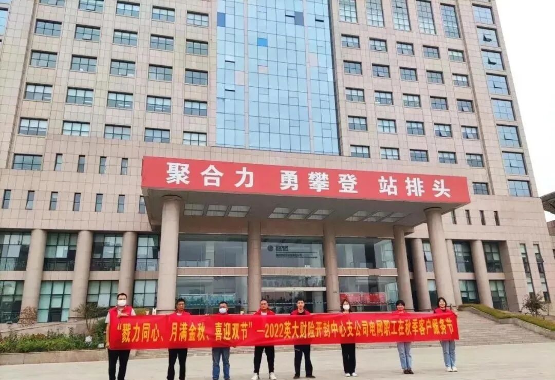 9月17日,英大财险开封中支走进开封市祥符供电公司,开展“戮力同心 月满金秋 喜迎双节”-2022英大财险开封中支电网职工在秋季客户服务节活动。