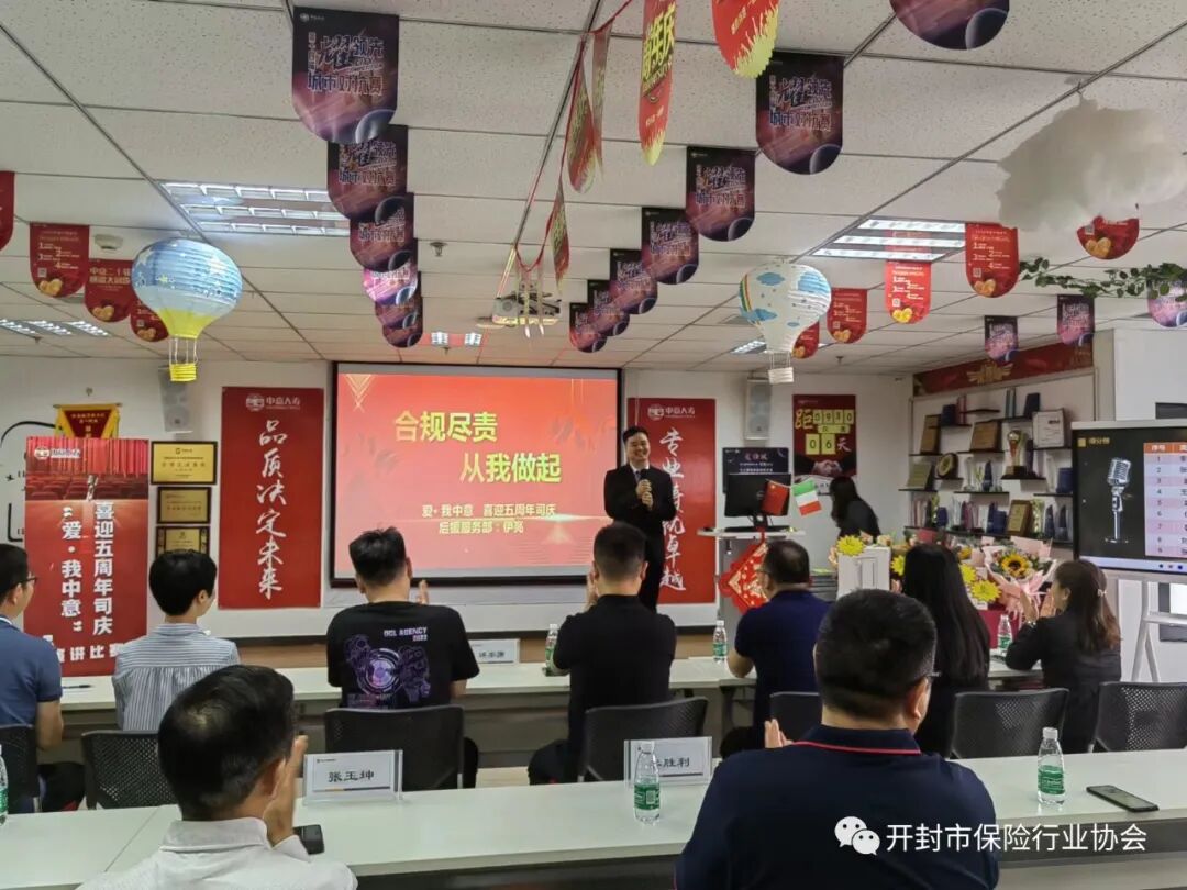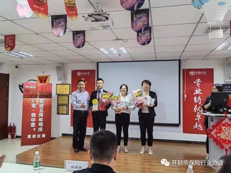 为迎接和庆祝中意人寿开封中支成立五周年,大力弘扬企业文化在公司发展史上的引领作用,增强内外勤伙伴责任感和使命感。9月24日下午,中意人寿开封中支举办了“爱?我中意 喜迎五周年司庆”主题演讲比赛,内外勤伙伴齐聚一堂,以特别的方式,为司庆献礼。中意人寿河南省分公司总经理张玉坤、总经理助理李胜利率分公司部门主管组成的评委团出席并观看了比赛。