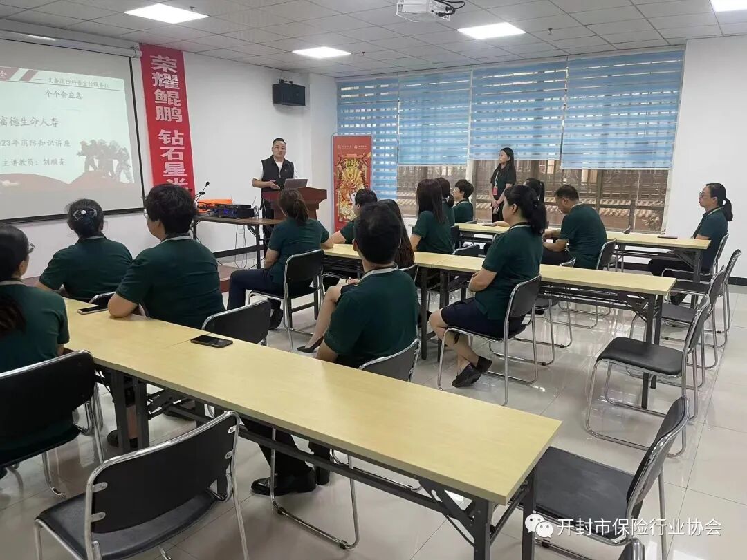 此次宣传富德生命人寿开封中支特别邀请了省消防协会义务消防科普及宣传服务队刘顺齐教员为员工进行讲解。