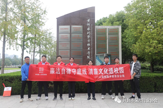 为进一步助力高校大学生树立并践行新时代金融消费观念,加强金融风险防范意识和金融安全意识,帮助高校大学生增强廉洁守纪意识、树立清廉从业价值观、系好廉洁从业的“第一粒扣子”,9月26日下午,人保财险开封市分公司纪委办公室/法律合规部联合理赔中心/客户服务中心,组织工作人员走进开封市黄河水利职业技术学院开展了“送清廉金融文化进校园”、“金融消费者权益保护教育宣传进校园”活动。