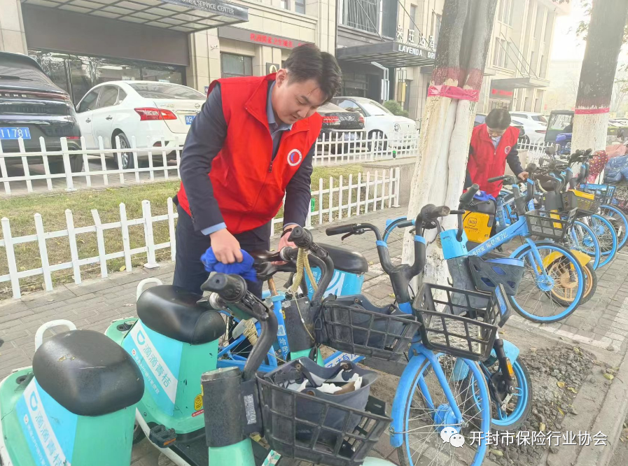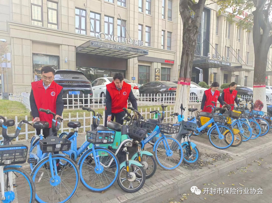 把单车摆放好,让城市更美好。11月22日下午新华保险开封中支组织党员志愿者走上街道,开展摆放共享单车志愿服务活动。志愿者们将公司附近沿街乱停乱放的共享单车进行统一规范整理,将倒在路旁的共享单车集中搬至规定区域内停放。志愿者们还带着毛巾和抹布,对车内的残留垃圾进行清理,集中擦拭车座和车把,为骑行共享单车的人员提供干净整洁的骑车体验,方便公众用车和出行。