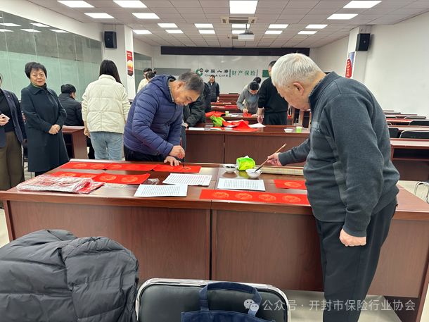岁末年初,春节将至。为让广大员工享受文化惠民的成果,营造祥和、喜庆的节日氛围。1月30日下午,中国人寿财险开封市中心支公司党委班子邀请禹王台区政协书画院的知名书画家们,为在岗员工们献上了一场别开生面的文化盛宴。