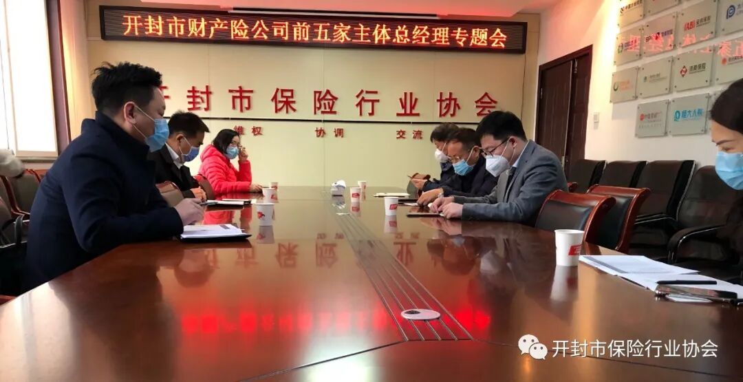 2月26日上午,开封市保险行业协会召开前五家财产险公司总经理专题座谈会,秘书长张燕、驻会监事刘克田参加会议。