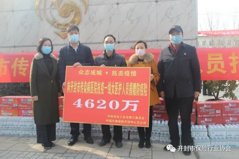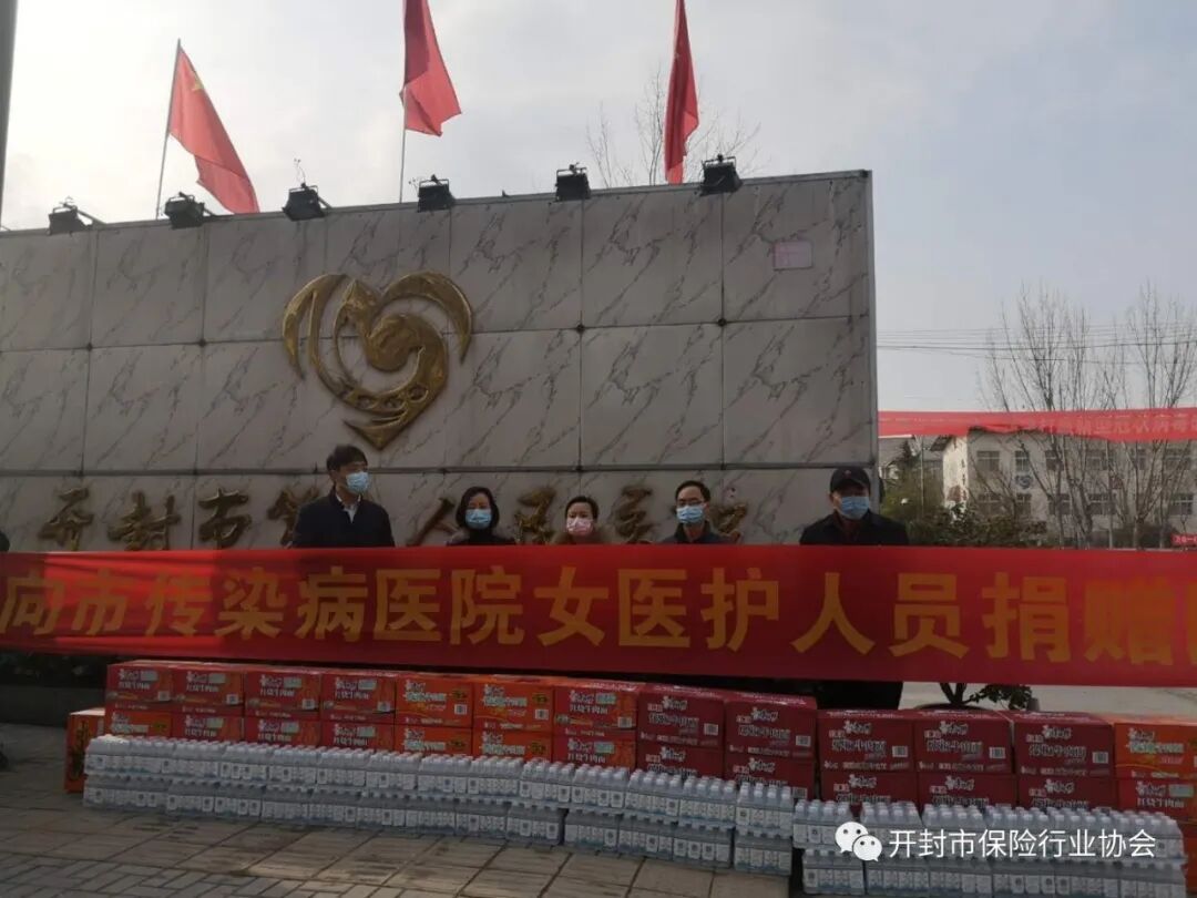 3月4日,开封协会联合大地财险开封中支慰问开封市传染病医院,并为该院抗疫一线154名女医护人员捐赠4620万元防疫险,同时送去了方便食品、饮用水等防疫物资,为我市疫情防控工作加油助力。市总工会女职工委员会主任程海梅、市保险协会秘书长张燕、大地财险开封中支党委书记、副总经理苏凯、市传染病医院党委书记梁建立、工会主席赖映华参加捐赠。