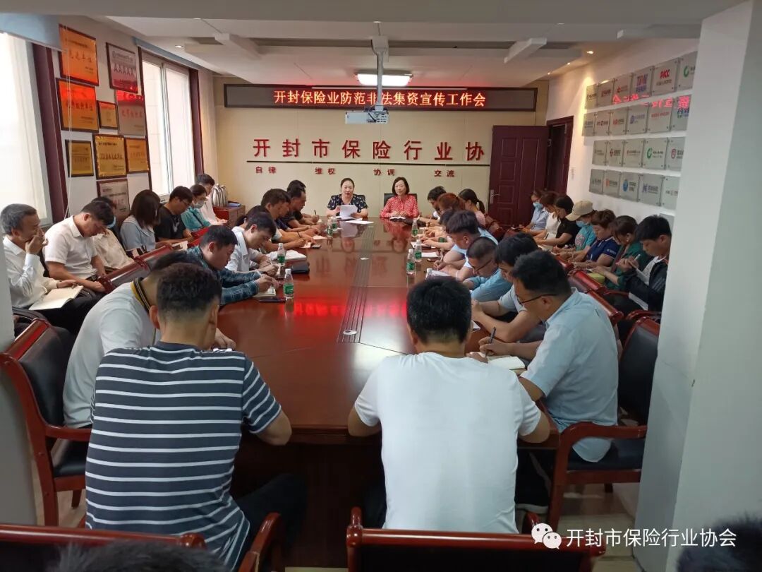 为切实做好开封保险业防范非法集资宣传教育工作,不断提升社会公众金融素养和风险防范意识,按照开封银保监分局要求,6月11日下午,开封协会召开工作会议,安排部署防范非法集资宣传活动,全市43家保险机构办公室负责人参会。