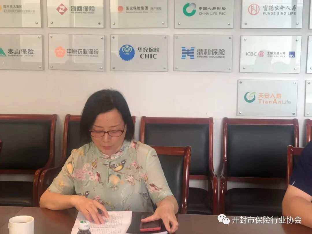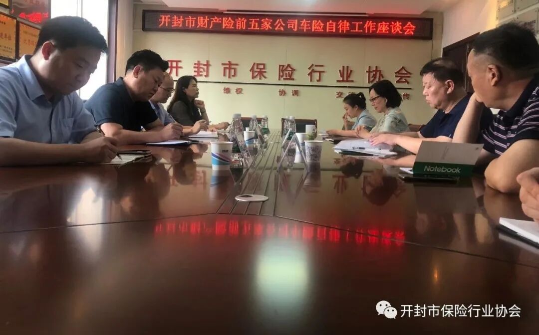 8月11日下午,开封协会组织财产险前五家公司总经理召开车险自律工作座谈会,协会会长于江、秘书长张燕、驻会监事刘克田及前五家公司总经理参加会议。