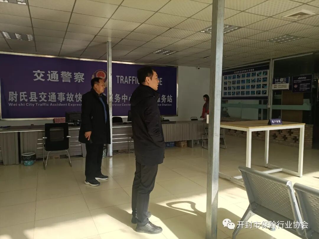1月7日,开封市快处快赔管委会负责人、市交警支队事故预防和处理大队副大队长闫鲲、市保险行业协会监事刘克田一行赴尉氏检查快处快赔服务站运行情况。