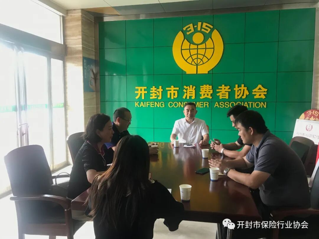 7月27日上午,开封市消费者协会秘书长吴烈良、市保险行业协会秘书长张燕、市汽车商会副会长焦文亮在消协一楼会议室围绕积极倡导维护暴雨天气受损消费者合法权益召开座谈会。