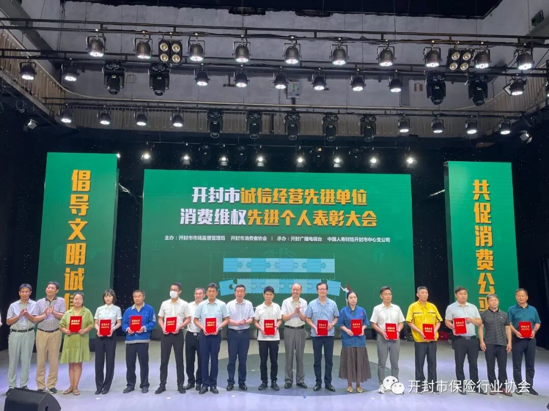 6月24日下午,由开封市市场监督管理局、开封市消费者协会、开封市广播电视台联合举办的开封市2021年度消费维权“双先”表彰大会在市电视台演播厅隆重举行。市广播电视台党委书记、台长左起超,市市场监管局党组成员、副局长李明锋,市消费者协会秘书长吴烈良,市市场监管局12315投(申)诉指挥中心主任克航平等出席大会,保险协会相关人员、部分保险公司代表参加大会。