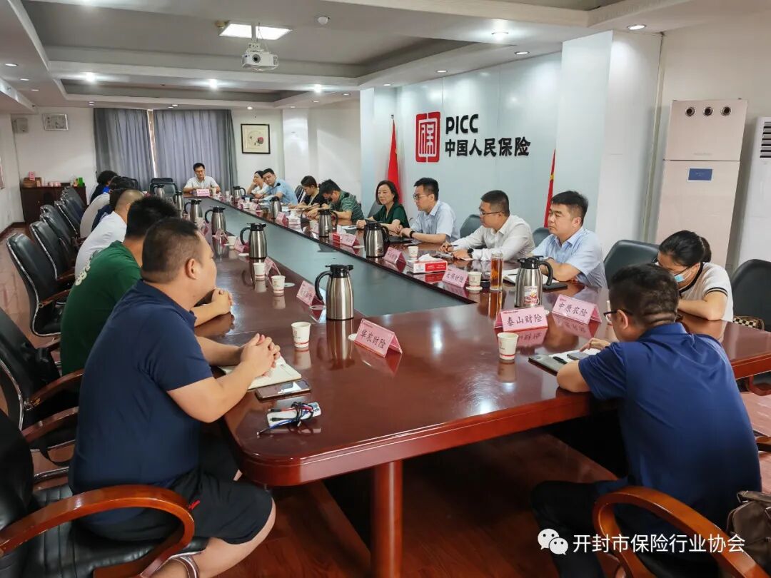 8月8日,人保财险开封分公司牵头组织全市财险机构召开自律工作座谈会。开封银保监分局保险科李天阙、开封市保险行业协会秘书长张燕应邀参会,全市二十家机构分管总或代表参加。