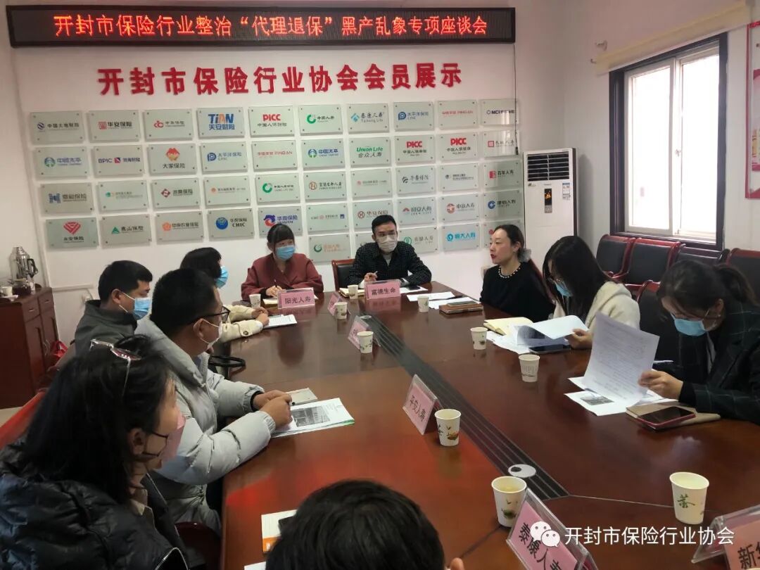 为进一步落实开封银保监分局关于整治“代理退保”黑产乱象的工作要求,11月24日上午,开封市保险行业协会组织部分人身险公司相关负责人召开座谈会,开封银保监分局普惠科、保险科相关负责同志参加会议,会议由协会副秘书长郭娟主持。