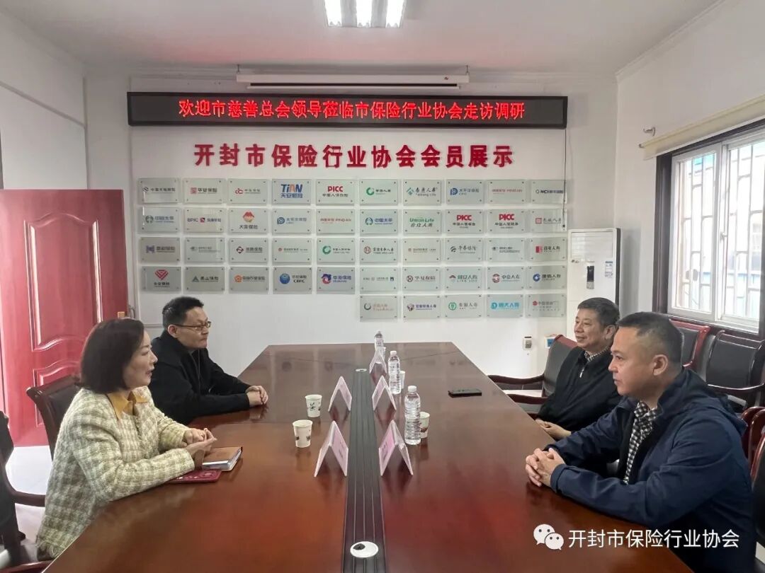 3月7日,开封市慈善总会何利军会长、王雷秘书长一行到开封市保险行业协会以座谈、走访的形式,实地调研我市保险业慈善活动开展情况。市保险协会秘书长张燕及相关工作人员进行了座谈交流。