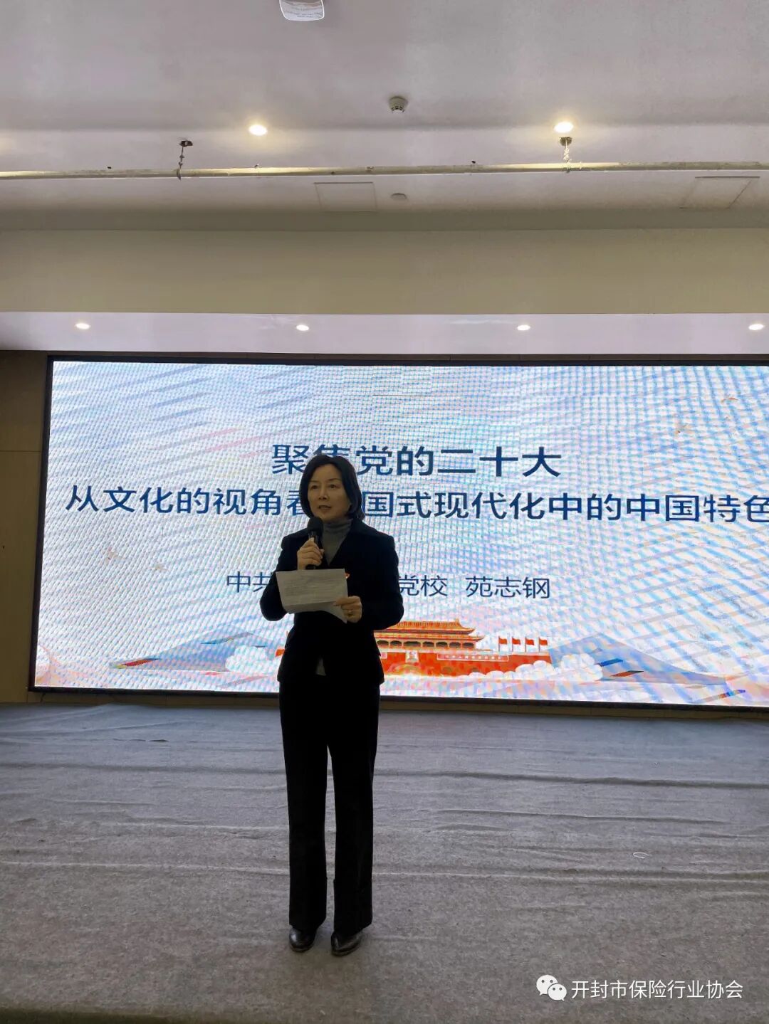 为深入开展学习贯彻习近平新时代中国特色社会主义思想主题教育,深刻领会、准确把握党的二十大精神,12月20日,按照国家金融监督管理总局开封监管分局的工作要求,市保险行业协会举办学习贯彻党的二十大精神专题讲座,邀请开封市委党校政治与社会发展教研室主任、教授苑志钢专题授课。市保险行业协会秘书长张燕,各保险机构班子成员、主要负责人及优秀党员参加讲座。