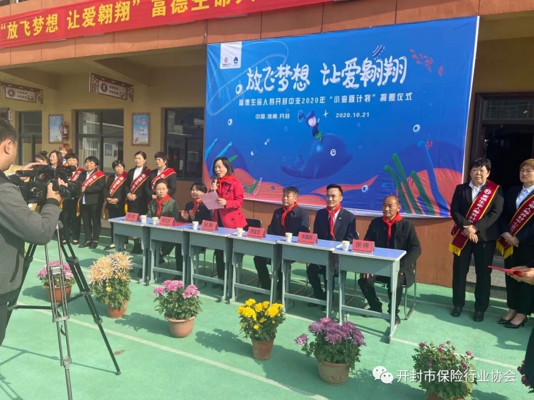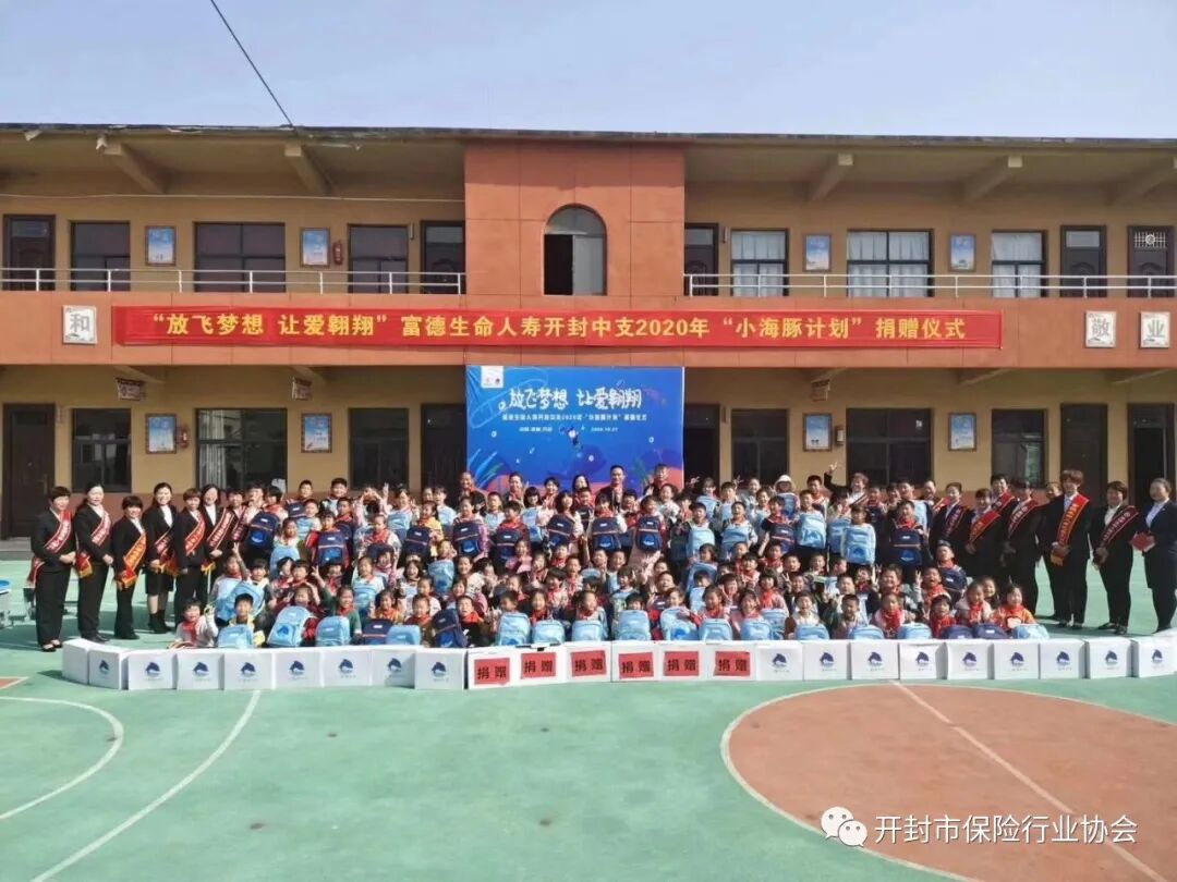 放飞梦想,让爱翱翔!10月21日上午,富德生命人寿开封中支来到杞县城郊乡赵楼小学举办2020“小海豚计划”公益捐赠活动。活动中,富德生命人寿开封中支为学校送去了图书、书包、衣物及“小海豚”温暖包等助学物资,同时为在校110名学生捐赠了“小海豚计划”专属意外伤害保险。开封市保险行业协会秘书长张燕,杞县教育局学生资助中心主任李金志,富德生命人寿开中支总经理于红利,总经理助理李国庆以及富德生命人寿杞县支公司内外勤员工代表、校职工及学生代表参与了本次活动。