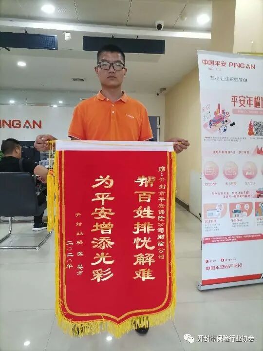 近日,车主李某将写有“帮百姓排忧解难、为平安增添光彩”的锦旗送到平安财险开封中支,对该中支查勘员张远军的服务表示由衷的感谢。