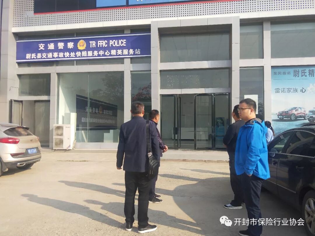 10月19日,河南省道路交通事故快处快赔项目负责人郭秋豪、省协会自律办孙铭哲一行赴开封指导快处快赔服务站建设工作,开封市快处快赔管委会负责人刘克田陪同。