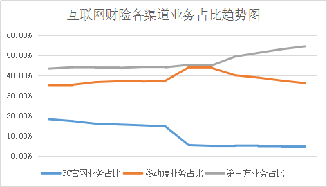2018年上半年,保费规模位居前八位的保险公司累计保费收入235.70亿元,CR8(指8个最大的企业占有该市场的份额)为72.21%,较2017年同期提高0.17个百分点。保费规模位居前三位的为平安产险、众安保险和人保财险,累计保费收入为167.51亿元,CR3为51.32%,较2017年同期提高0.44个百分点。 从市场主体看,2018年上半年,众安保险、泰康在线、安心保险、易安保险4家专业互联网保险公司实现累计保费收入78.13亿元,同比增长达94.91%;占整体互联网财险业务的23.94%,同比提升7.07个百分点。其他64家保险机构包括平安产险、人保财险、太保产险等共实现累计保费收入248.27亿元,占整体互联网财险业务的76.06%。 众惠财险、汇友建工两家财产险类相互保险公司于2017年上半年相继开业。2017年,众惠财险共计产生非车险保费2692.84万元,互联网非车险市场排名第30,到2018上半年,众惠财险共计产生非车险保费7741.88万元,互联网非车险市场排名第20。 国泰产险、安盛天平、安联保险、美亚保险、史带财险等16家外资公司累计互联网财险保费收入为17.17亿元,同期增长率为124.60%;占整体互联网财险业务的5.26%,较2017年同期增长2.04个百分点。 从险种发展看,上半年累计互联网车险保费收入180.35亿元,同期增长15.38%,保持连续6月正增长,扭转2016-2017年的持续负增长状态,且保持基本平稳状态;上半年互联网保险业务中车险业务占比为55.25%,较同期下降10.49个百分点。 上半年互联网非车险保持持续稳健的发展态势,累计保费收入为146.06亿元,业务占有率持续上升至44.75%,同期增长10.49个百分点;非车险业务同期增长率为79.35%,较同期减少15.84个百分点,高速增长状态有所回落。 非车险中,意外健康险累计保费收入为72.89亿元,业务占比为(这里仍指占互联网财产保险整体业务的比重,下同)22.33%,财产险累计保费收入为7.76亿元,占比2.38%,责任险累计保费收入为13.07亿元,占比4.00%,信用保证险累计保费收入为24.18亿元,占比7.41%,其他非车险(主要包括退货运费险)累计保费收入为28.15亿元,占比8.63%。 从地区发展看,2018年上半年,互联网车险业务分布集中于东部地区,累计保费收入为95.73亿元,占为55.67%,较2017年底提升近5个百分点。中部地区累计保费收入占26.43%,西部地区累计保费收入占17.90%。 从渠道发展看,总体上,保险公司PC官网业务明显萎缩,移动端回落至与同期基本持平,第三方业务较快增长。通过公司PC官网累计实现保费收入为14.17亿元,占4.34%,同期下降14.14个百分点;通过移动终端(APP、WAP和微信等方式)实现累计保费收入118.00亿元,占36.15%,较同期提升2.07个百分点;通过第三方(包括保险专业中介机构和第三方网络平台)实现累计保费收入为178.14亿元,占54.58%,较同期提升10.36个百分点;其他渠道占比较低。 文中图表来自中国保险行业协会。