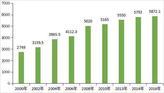 近年来,国家政策扶持力度越来越大,设施大棚生产得到快速发展,我国设施蔬菜面积、产量以及产值一直都在不断扩大。其中设施蔬菜种植面积从2000年2749万亩到2016年增长至5872.1万亩,成为世界上设施种植面积最大的国家,设施蔬菜产量2.52亿吨,占蔬菜总产量30.5%,全国设施蔬菜产业净产值为5700多亿元。