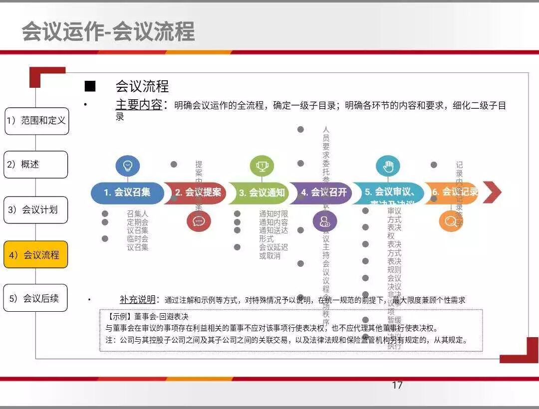 标准编制背景 为贯彻落实党的十九大和第五次全国金融工作会议精神,全面防范化解重大风险,持续健全法人治理结构,促进保险业持续健康发展,持续提升保险业公司治理的科学性、稳健性和有效性,真正实现保险业从高速增长向高质量发展转变,在中国银行保险监督管理委员会指导下,中保协以标准这一行业自律手段为切入点,于今年4月正式立项启动《保险业公司治理实务指南》系列标准编制工作。在起草过程中,充分整合行业内外力量,由阳光集团等39家保险机构参与起草,积极借鉴国际上公司治理领域的核心指引文件,面向全行业广泛征求意见,集思广益,吸取行业最佳实践;针对保险业公司治理中的管理活动和决策以及公司治理管理过程中的实务操作,本着“重点突出、急用先行”的原则,确定了三会运作、信息披露、关联交易等作为具体标准内容,具有较强的实用性。 《保险业公司治理实务指南总体框架》 《保险业公司治理实务指南 总体框架》共7章20条,结合保险业自身特点和实操经验,搭建治理结构、治理机制、治理监督三维度框架体系,明确了公司治理的内涵和外延,初步形成了一套统一的体制机制。 《保险业公司治理实务指南会议运作》 《保险业公司治理实务指南 会议运作》3项标准共23章,150余条,围绕股东(大)会、董事会和监事会三会组织运作流程,以会议运作流程为核心,形成了范围和定义、会议概述、会议计划、会议流程和会议后续五大部分;明确了会议常规议题及相关会议文件格式、内容,使会议运作规范更具借鉴和参考意义。 构建机制健全、运转协调、制衡有效的公司治理结构是实行公司制的核心,更是新形势下深化金融领域改革、完善现代金融企业制度的重要任务。下一步,中保协将组织开展对四项标准的宣传贯彻培训,切实提高标准应用的有效性。《保险业公司治理实务指南》作为系列标准,正在编写的还有12个,内容涉及信息披露和关联交易,以后将陆续发布。