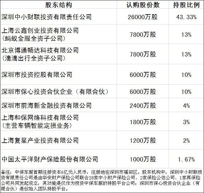 股东背景强大 据了解,中保车服发起人股东堪称豪华阵容,包括深圳中小财联投资有限责任公司、上海云鑫创业投资有限公司、北京博通畅达科技有限公司、深圳市投资控股有限公司、深圳市前海新金融投资有限公司、上海和保网络科技有限公司、上海复星产业投资有限公司、中国太平洋财产保险股份有限公司、深圳市保心投资合伙企业(有限合伙)。 除保心投资作为创始团队持股平台外,其他8家股东可分为4类:一是保险公司、二是互联网公司、三是政府投资平台、四是知名投资机构。 股东名单中的“深圳中小财联投资有限责任公司”为中小保险公司出资中保车服的持股平台,包括了华安保险、众安财险、国任财险等30余家中小保险公司。而另有两家大型财险公司,一是中国太平洋财产保险公司直接位于9大发起股东之列,二是阳光财险公司通过中小财联间接持股中保车服。 此外,股东名单中出现了上海云鑫创业投资有限公司及北京博通畅达科技有限公司两家公司。前者为蚂蚁金服100%持股的子公司,后者为滴滴出行100%持股的子公司。两家互联网公司自中保车服设立之初就保持了浓厚的投资兴趣,并通过委派团队现场协助等多种方式深度参与中保车服筹备工作。 除了资金支持和团队支持外,两家互联网公司还将从技术层面给予全力支持。其中,蚂蚁金服拥有图像识别、支付结算、地图定位、信用体系、云计算等强大技术能力,可使定损照片可达到毫秒级自动审核,一次出险多次理赔将不再可能;而滴滴出行在车辆及人员调配能力、高效的路径规划能力、驾驶行为数据检测等方面具有领先优势,可助力中保车服平台建设更加迅速。两家互联网巨擘的入局,使中保车服的创新模式和发展前景充满了想象空间。 中保车服股东结构表 高起点创业 根据选举结果,中保车服第一届董事会由童清、王禹、陈亮、李锦飞、王新利、李志强、郭红等7名董事组成,其中郭红为独立董事;中保车服第一届监事会由蔡基谱、何毅华及郑权等3名监事组成。童清出任董事长,李志强出任总裁,蔡基谱出任监事长。 除管理团队具有较深的行业背景外,中保车服在业务资源、政府与行业支持以及资金等方面,可谓是具备超高的创业起点。 仅就可以提供业务的股东资源而言,中保车服即已囊括了包括太平洋财险及阳光财险等两家大型财险公司和华安保险等30余家中小财险公司。这些保险公司对于中保车服的业务导入因基于股东的身份而具有更紧密的合作度。这使中保车服从出身起即已在业务资源上建立起宽阔的护城河,这条护城河是其他可能的同类公司难以通过资金或其他方式投入就可以逾越的。 另外,中保车服的创立不仅受到了监管系统和行业的支持,还受到了深圳地方政府的强力支持。深圳市政府于2017年12月8日召开2017年度投资推广重大项目签约大会,为深圳规格最高最权威的招商大会。本次大会上,深圳市从上千个项目中,共选出36个重点项目现场签约。中保车服作为36个重点项目之一,受邀参加了签约仪式。同时,深圳市政府对中保车服非常重视,列入了市政府重点引进项目,将参照总部企业在落户政策等方面给予大力支持,还要求筹备组定期报告筹备工作进展情况。 值得注意的是,随着中保车服创立大会的正式召开,中保协即在中保车服设立了“中保车服保险行业管理委员会”,并制订了相应的管理办法,这使得中保车服自出生之日起就获得了潜在竞争者无法比拟的行业公信力。该行业管委会由中保协和中保车服共同派人组成。根据管理办法,行业管委会将在中保协的指导下,在授权范围内履行相关职能,旨在保障中保车服及其互联网“车险理赔服务平台”的行业属性、行业数据和信息安全,并对平台运营进行指导。 创新的跨界服务平台 据统计,2017年国内汽车保有量2.17亿辆、车险理赔金额4千亿。而在广阔的市场面前,国内查勘模式依然为保险公司及公估公司主导的传统查勘,尚未出现区域性或全国性的互联网查勘企业。根据规划,中保车服将全力建设面向全行业的“车险理赔服务平台”,通过车险查勘、车辆快修、零配件供应和车生活服务四项功能的建设,为保险公司及客户提供车险理赔包括查勘、快修、零配件供应等系列服务以及一系列车主增值服务,将短时低频用户向长期高频用户转化,从而实现平台用户数量的爆发性增长。 据中保车服有关负责人介绍,作为一家跨界经营的互联网保险科技公司,中保车服既连接着保险行业,又连接了互联网行业,更是面向广大消费者。同时,中保车服又是一个资源整合平台,这些资源既包括股东资源、行业资源、政府资源,也包括车险供应链资源、客户资源及其他关联的上下游资源。除了需要具备强大的资源整合能力,更考验中保车服未来发展模式和理念上的创新。 据悉,中保车服所打造的平台将对所有保险公司、公估公司、车辆服务提供商及广大车主消费者完全开放,在依法合规和不违背商业伦理的前提下,各类B端(包括保险公司、车险上下游公司、车辆服务提供商)和C端客户均可以通过平台自由高效地获得产品、服务或进行交易。B端还可以向平台提供优质产品与服务,供客户选用。中保车服将既会向社会提供其自己开发的特色产品与服务,还会为其他市场主体尤其是车辆服务提供商的优质产品与服务提供交易支持。 就车