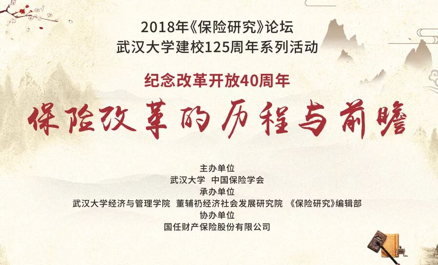 2018年10月19日,“2018年《保险研究》论坛”暨“中国保险历史(文献)图片展”在武汉大学举办。本次论坛由武汉大学、中国保险学会主办,武汉大学经济与管理学院、董辅礽经济社会发展研究院、《保险研究》编辑部承办,国任财产保险股份有限公司协办。论坛的主题是“纪念改革开放40周年:保险改革的历程与前瞻”。