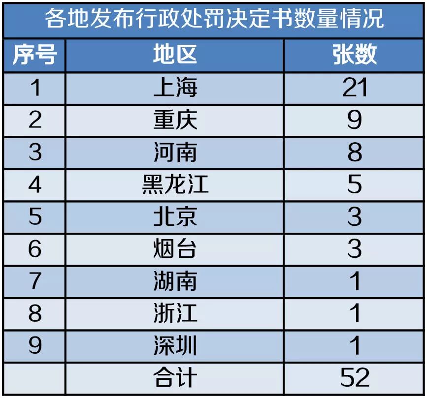 5月1日至5月31日,中国银保监会和地方监管部门针对保险业共发布54张行政处罚决定书,较上月减少21张,其中,中国银保监会发布了2张,地方监管部门发布了52张。罚款金额共计918.93万元,较上月减少343.47万元。
